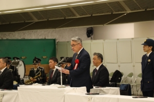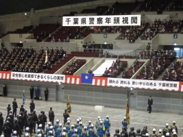 令和8年千葉県警察年頭視閲に全委員が出席し、警察本部長等とともに部隊巡閲を行った後、寺嶋委員長が「県警職員が一丸となって「安全安心を実感できるくらしの実現」という目標に向け、職務に精励するようお願いしたい。」旨の挨拶をした。